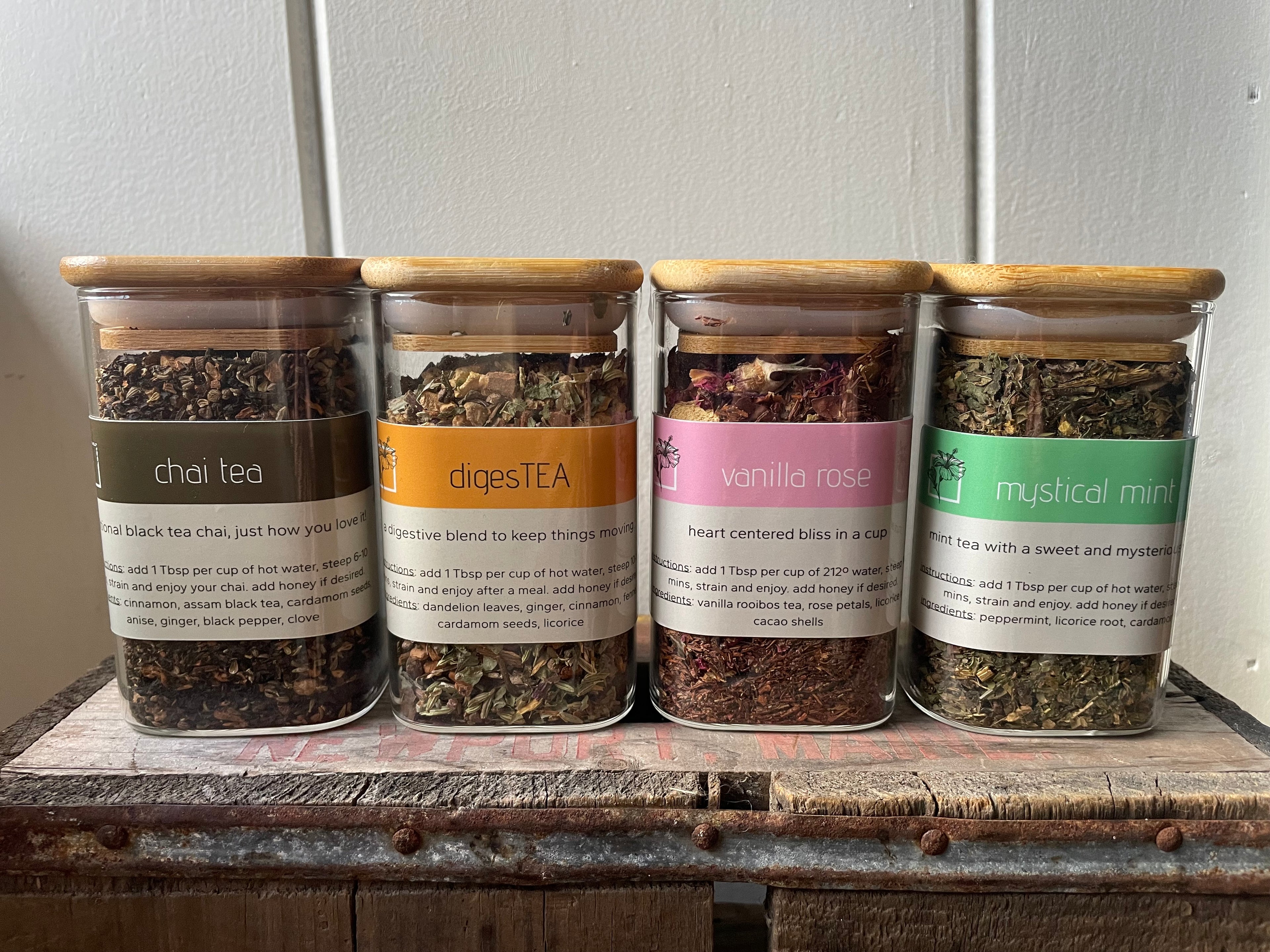 all of our tea blends are created by an herbalist, with the principal of herbs as medicine. every ingredient in the tea is selected for synergy, medicinal value and flavor to offer you the most potency and enjoyment in each cup!